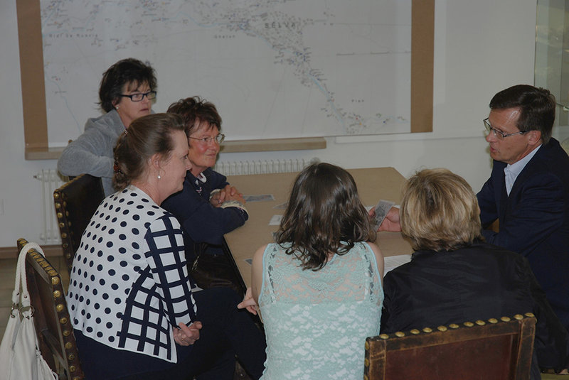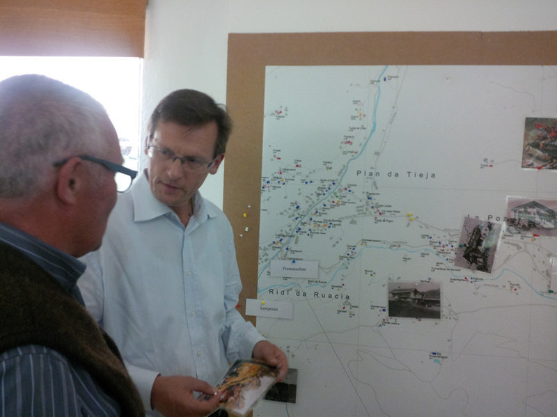 Eine spielerische Entdeckungsreise durch die Welt der Höfenamen, mit dem Heimatforscher Pauli Senoner da SantuelInformationstisch zur Höfe-Kartierung einst & heute