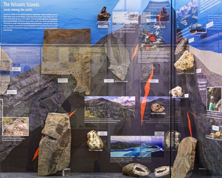 Um die geologischen und biologischen Ereignisse zu verdeutlichen, die in den 10 Millionen Jahren vor 247 bis 237 Mio. Jahren zur Entstehung der Dolomiten beitrugen, wurden im Sommer 2023 zwei Vitrinen neu gestaltet.
