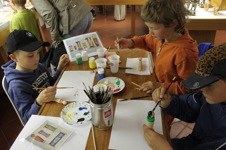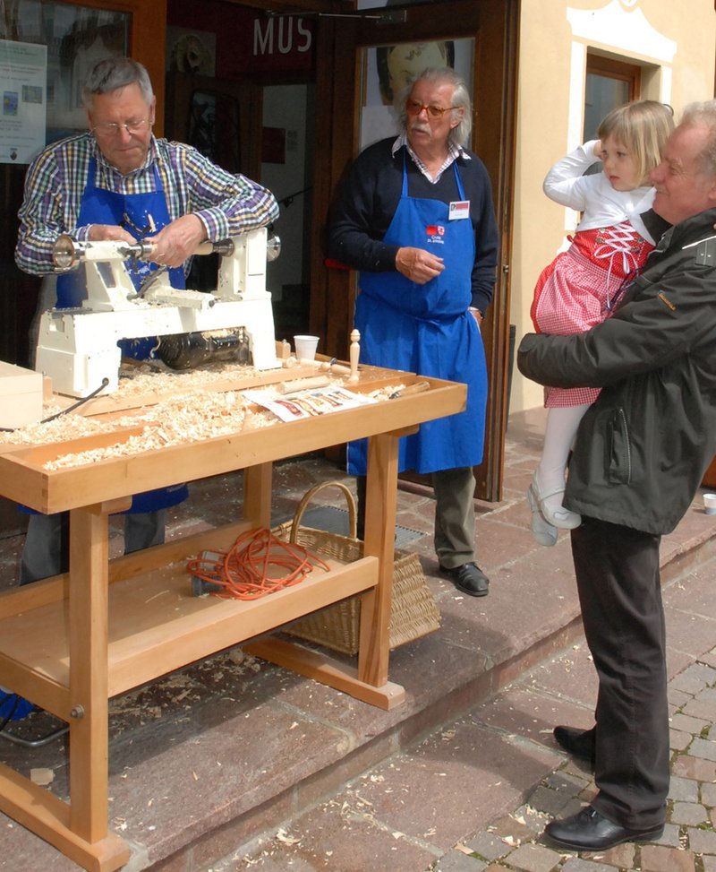 Kinder und Jugendliche können dem Drechsler bei seinem Handwerk zuschauen und in einer improvisierten „Spielzeug-Malerwerkstatt“ ihre gedrechselte kleine Fatschenpuppen selbst bemalen. Von den Fadengauklern aus anno Domini inspiriert, wollen wir zudem phantasievolle bewegliche Figuren gestalten.