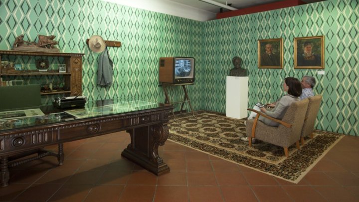 Die schönsten Stücke der Sammlung sind im Museum ausgestellt. Hier kann man Trenker in einem 60er-Jahre- Wohnzimmer spüren: in seinen Möbeln, in Erinnerungsstücken an sein Leben als Bergführer, Filmstar, Autor, Umweltpionier und Erzähler und natürlich in seinen Erzählungen am Bildschirm.