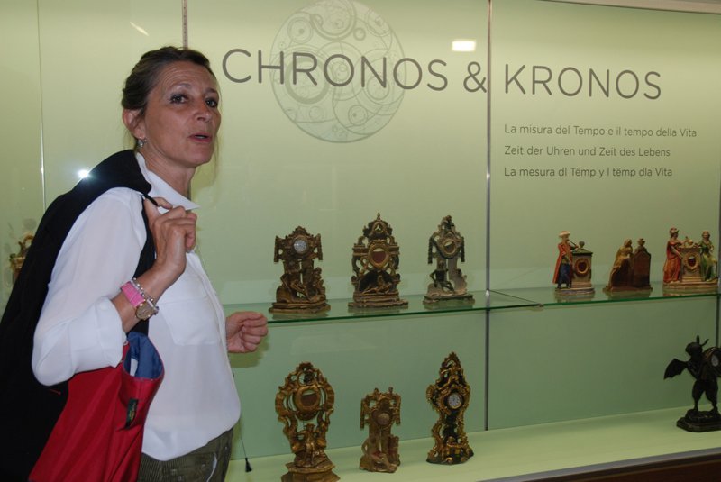 Die Ausstellung „Chronos & Kronos“ zeigt rund zwanzig Grödner Uhrständer aus der Sammlung des Museum Gherdëina und privater Leihgeber, die einen Querschnitt durch die Vielfalt an Formen, Motiven und Stilrichtungen bieten und dessen Entstehungszeit von der Mitte des 18. Jhs. bis zur Mitte des 19. Jhs. Reicht.