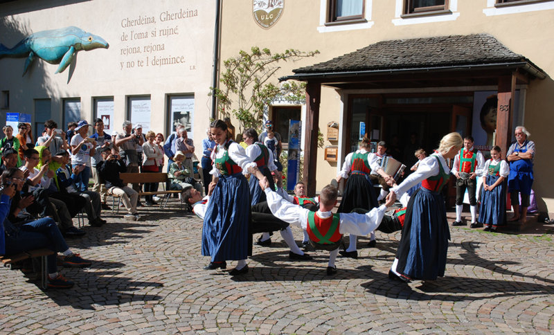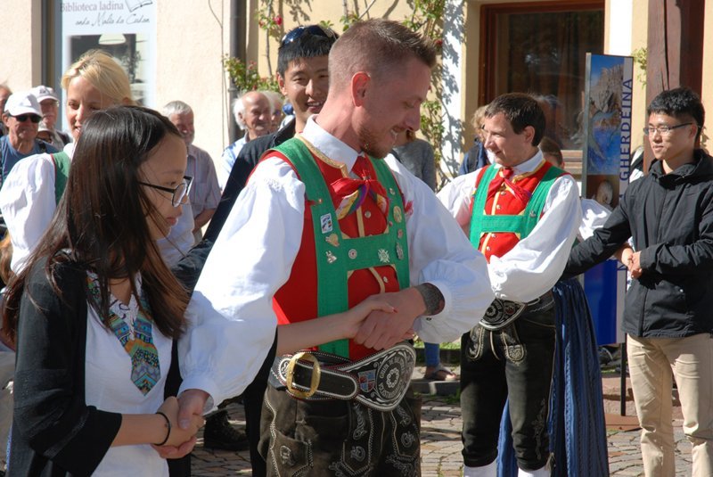 Nach der Besichtigung der geologisch-paläontologischen und der mineralogischen Sammlungen konnte die Gruppe beim geführten Museumsrundgang auch ein aufschlussreiches Bild der Geschichte und Kultur des Grödentales erhalten. Anschließend konnten die Gäste aus China bei einer Vorführung der Tanzgruppe aus St.Christina und Wolkenstein noch den Charme traditioneller Tänze genießen.