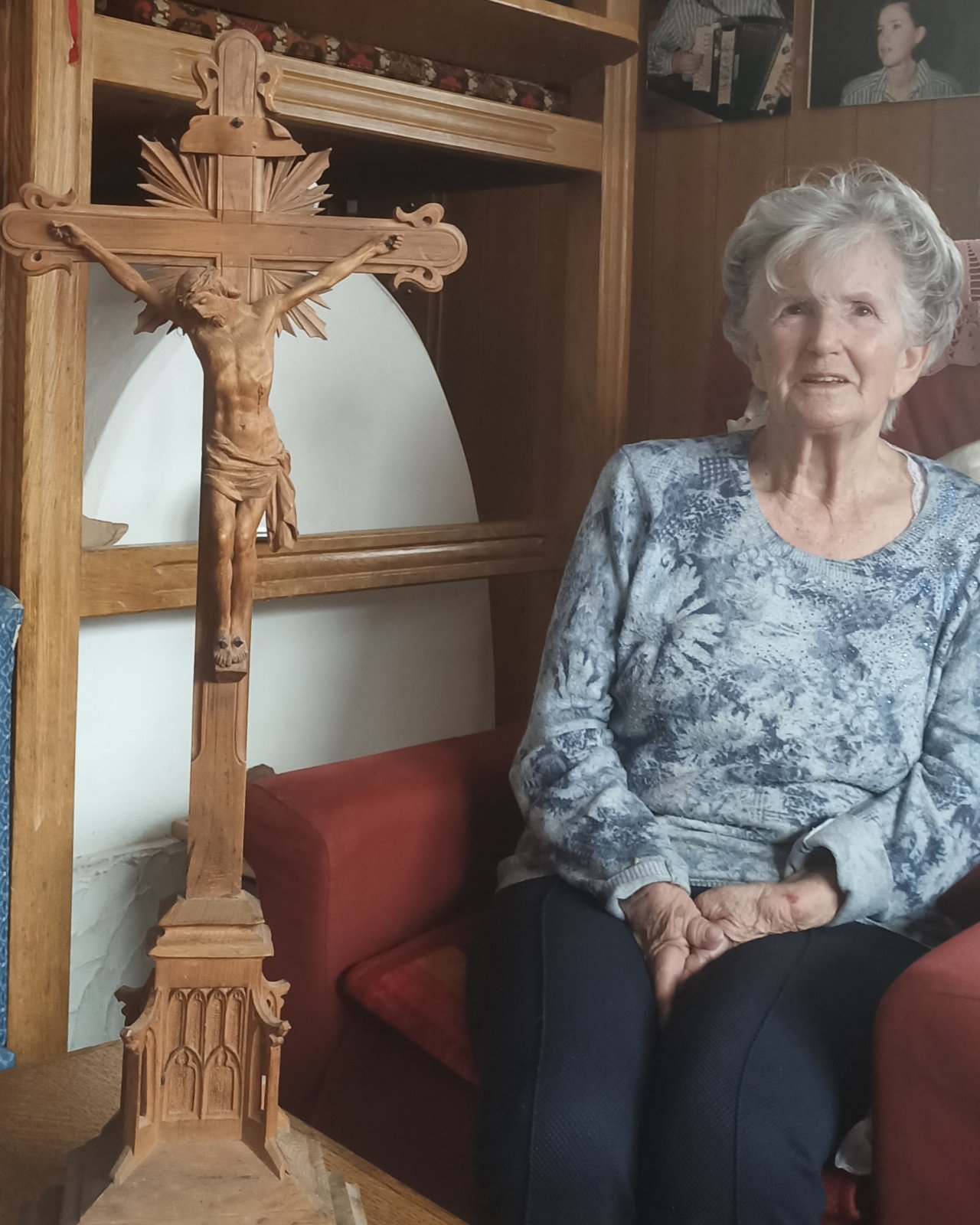 Tla foto publicheda vëijen Annemarie dl Pizer te stua cun l bel crist ziplà da si besava.