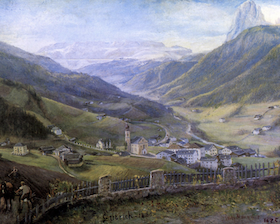 L moler, poet y scritëur Franz Noflaner (1904-1989) ie reprejentà cun trëi gran chedri di ani 1970.
